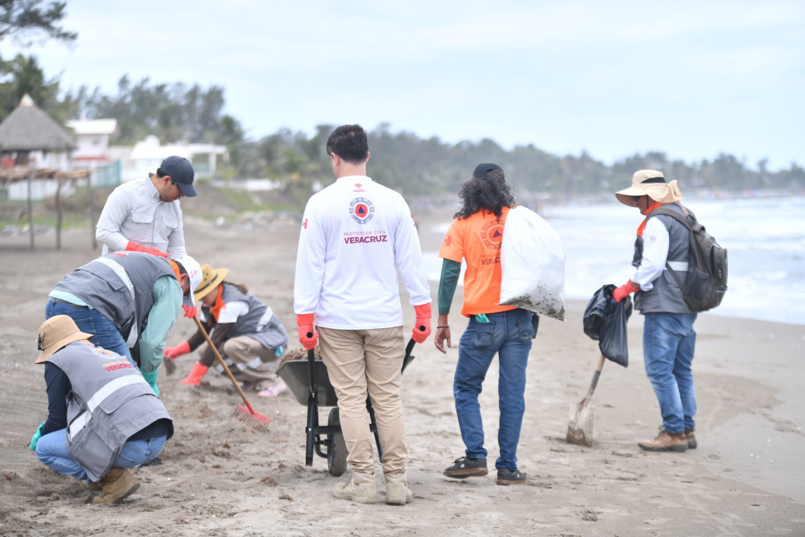 Desde temprana hora, brigadas integradas por 66 personas recorren un tramo aproximado de 2 kilómetros de costa, donde realizan labores de recolección de residuos, como parte de un operativo que se ha sostenido durante cuatro días consecutivos, registrando una disminución progresiva en la presencia de trazas de hidrocarburos.