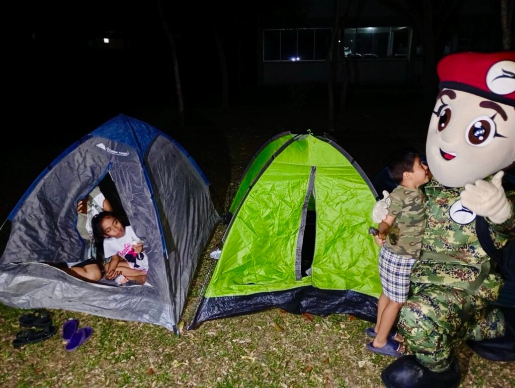 En un ambiente lleno de camaradería y compromiso, los participantes disfrutaron de juegos como fútbol y carrera de costalitos, los cuales fueron bien recibidos por los pequeños y sus acompañantes. Al caer la noche, se celebró una fogata donde, con la supervisión de los militares, se llevó a cabo la tradicional quema de bombones, creando un ambiente festivo y memorable.