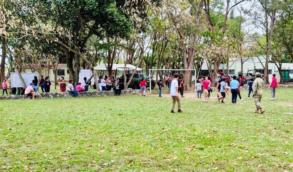 Minatitlán, Veracruz.- El pasado 16 de marzo, alrededor de las 4:00 p.m., el 3er. Batallón de Infantería, en Minatitlán, organizó una jornada especial de convivencia para niños y sus tutores. El evento, que reunió tanto a miembros de las Fuerzas Armadas como a la población civil, consistió en un campamento donde se realizaron diversas actividades recreativas para fortalecer los valores familiares y promover la sana convivencia.